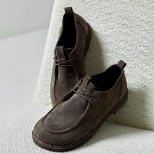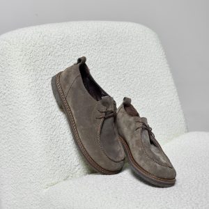 Grey Brown Suede Anatomic Shoes Handmade Flats Leather