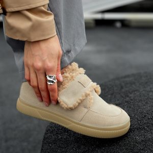 Beige Suede Winter Shoes Warm Daily Clogs Cozy