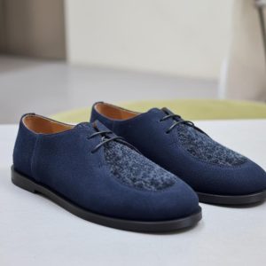 Navy Suede Lace Up Shoes Minimalist Derby Flats