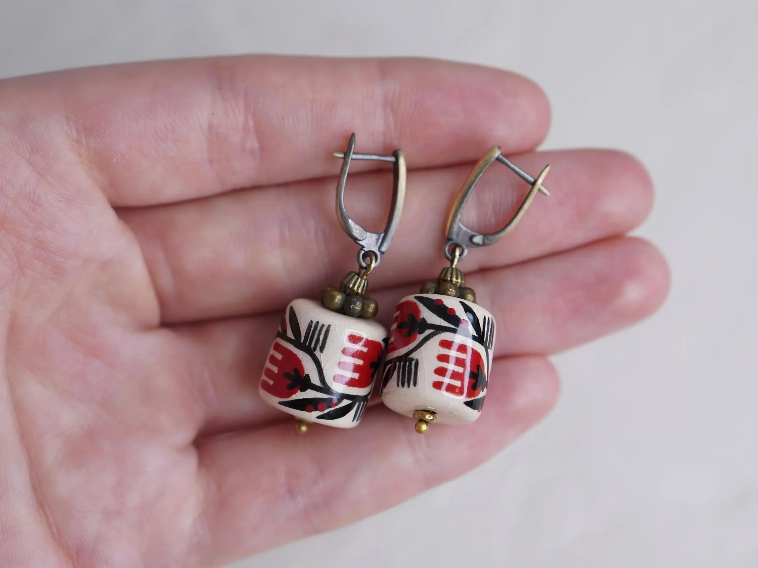 Discover these amazing Ceramic Earrings, perfect for adding a touch of festive cheer to your holiday look. Featuring a beautiful floral pattern and intricate beading, these dangle earrings are a standout piece of artist jewelry. Ideal as an ethnic jewelry gift, they offer a unique blend of cultural charm and artistic craftsmanship, making them a memorable gift for any occasion.