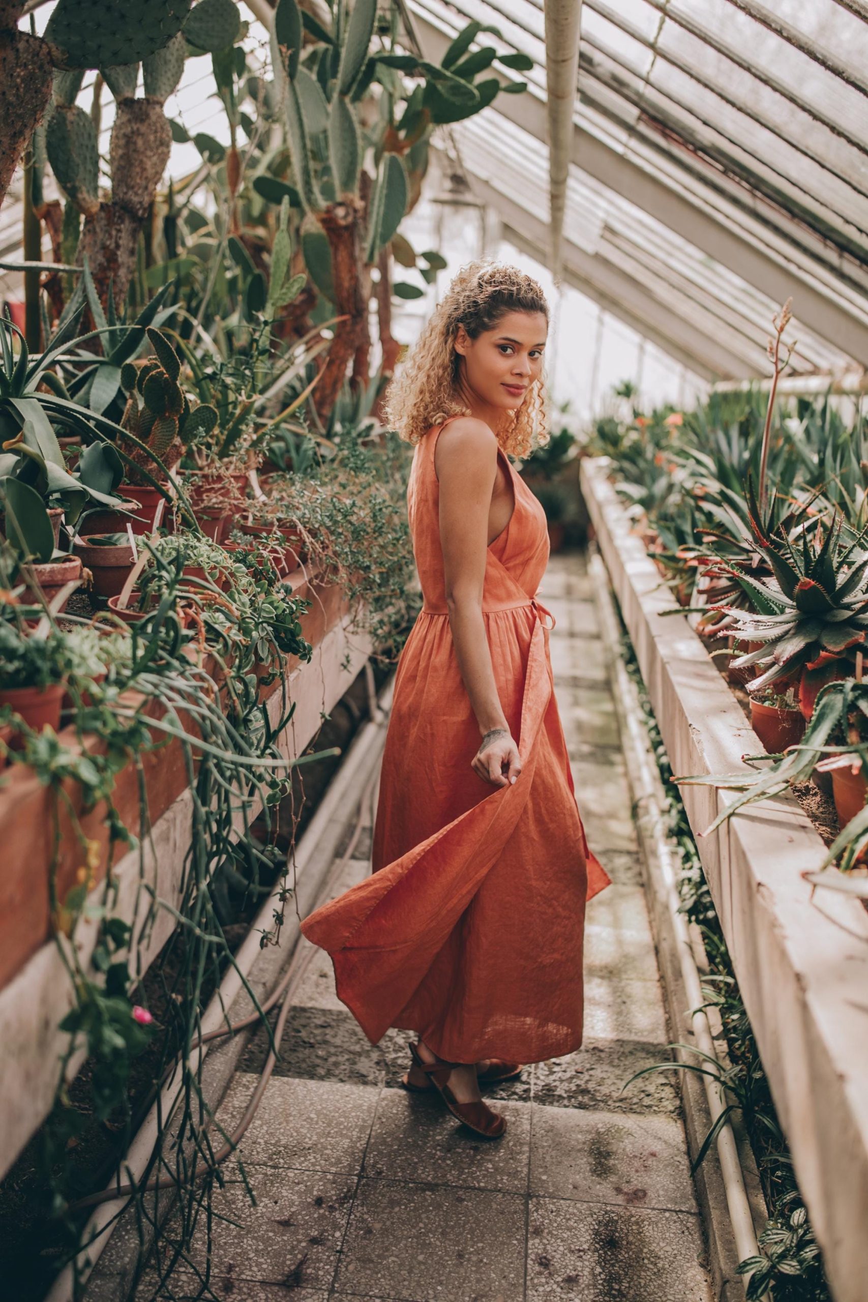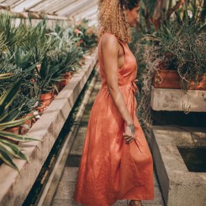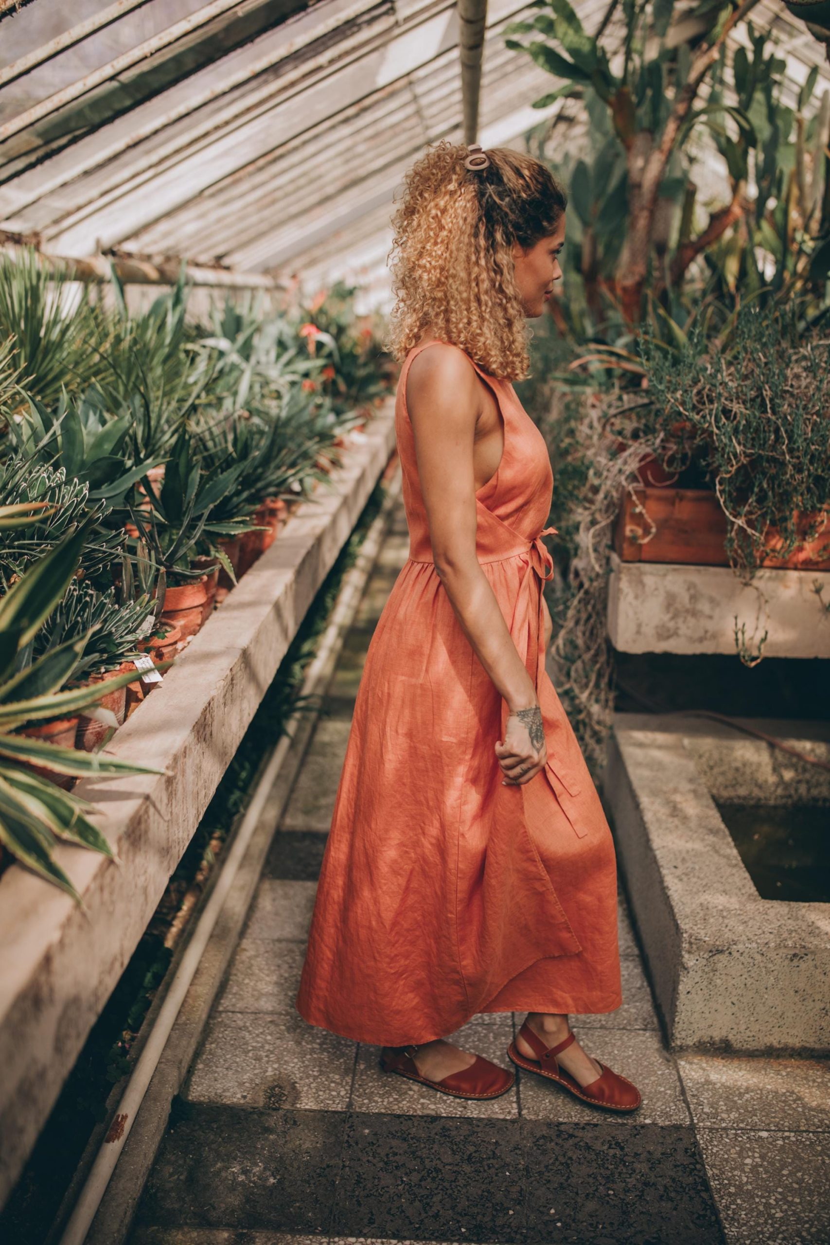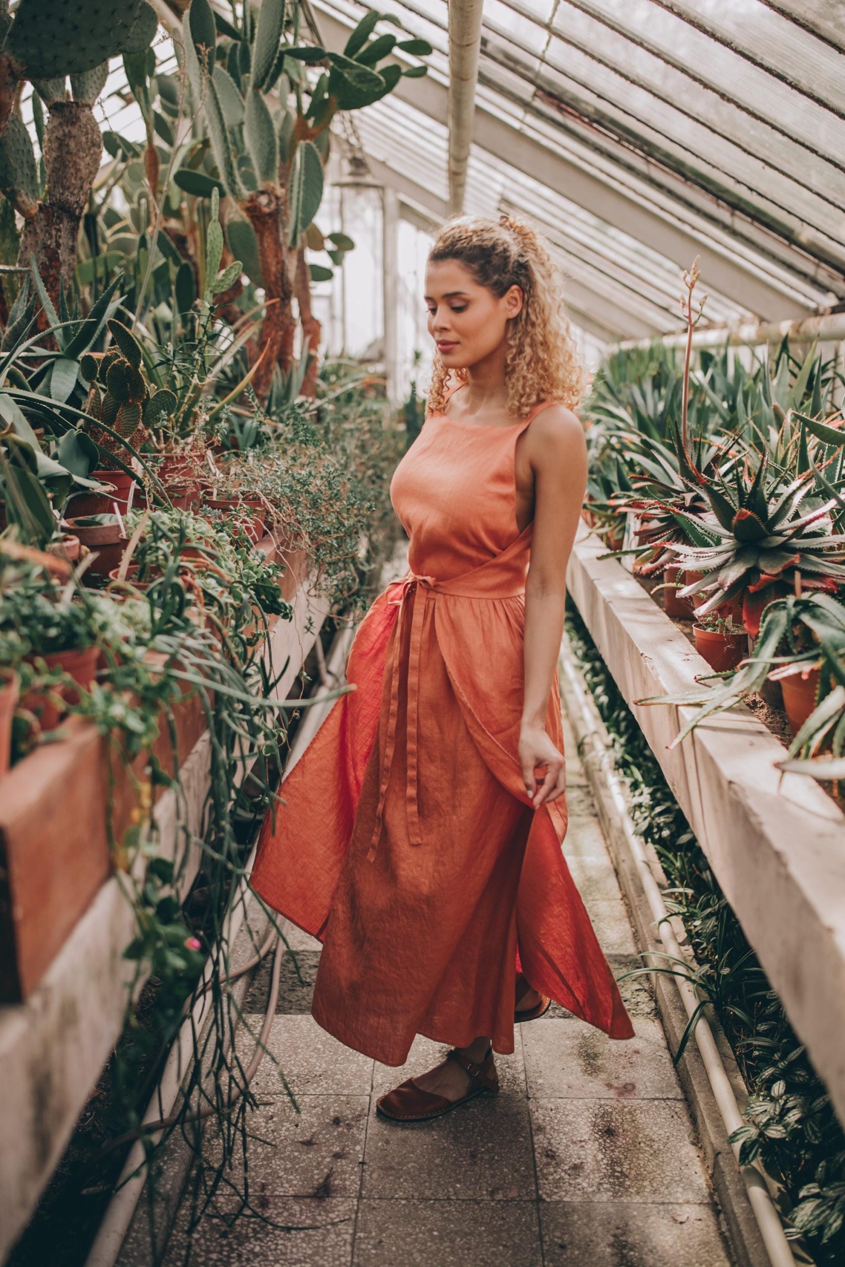 The linen double wrap midi dress is a perfect blend of elegance and comfort. Made from 100% pure linen, it offers breathability and a soft feel, making it ideal for all seasons. The unique double wrap design provides a flattering silhouette, while the adjustable waist tie allows for a customizable fit. Its maxi length adds versatility, making it suitable for both casual outings and special occasions. Whether paired with sandals for a relaxed look or heels for a more polished appearance, this dress is a timeless and effortless wardrobe staple.