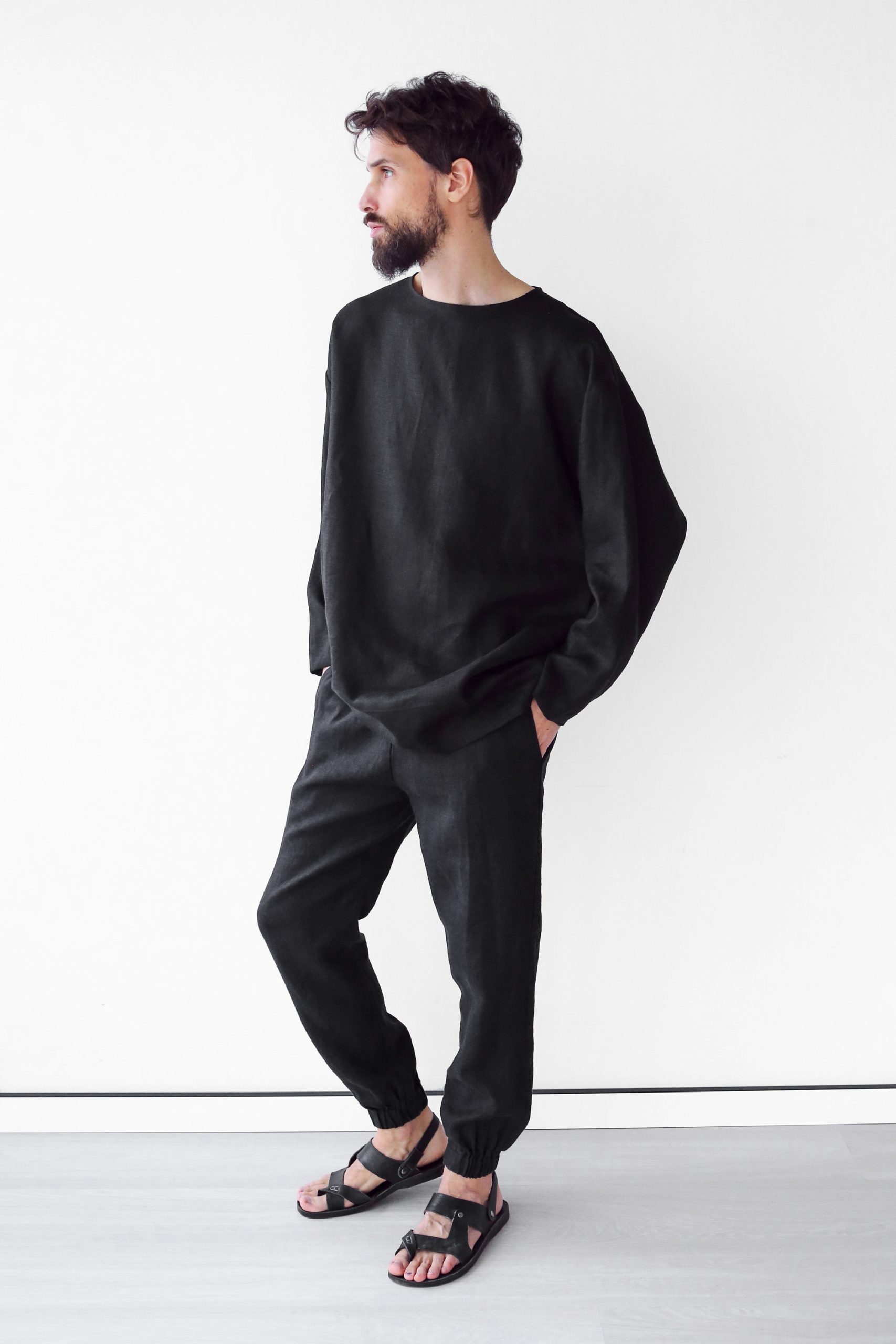 Mens Linen Oversize Sweatshirt Black Shirt For Men