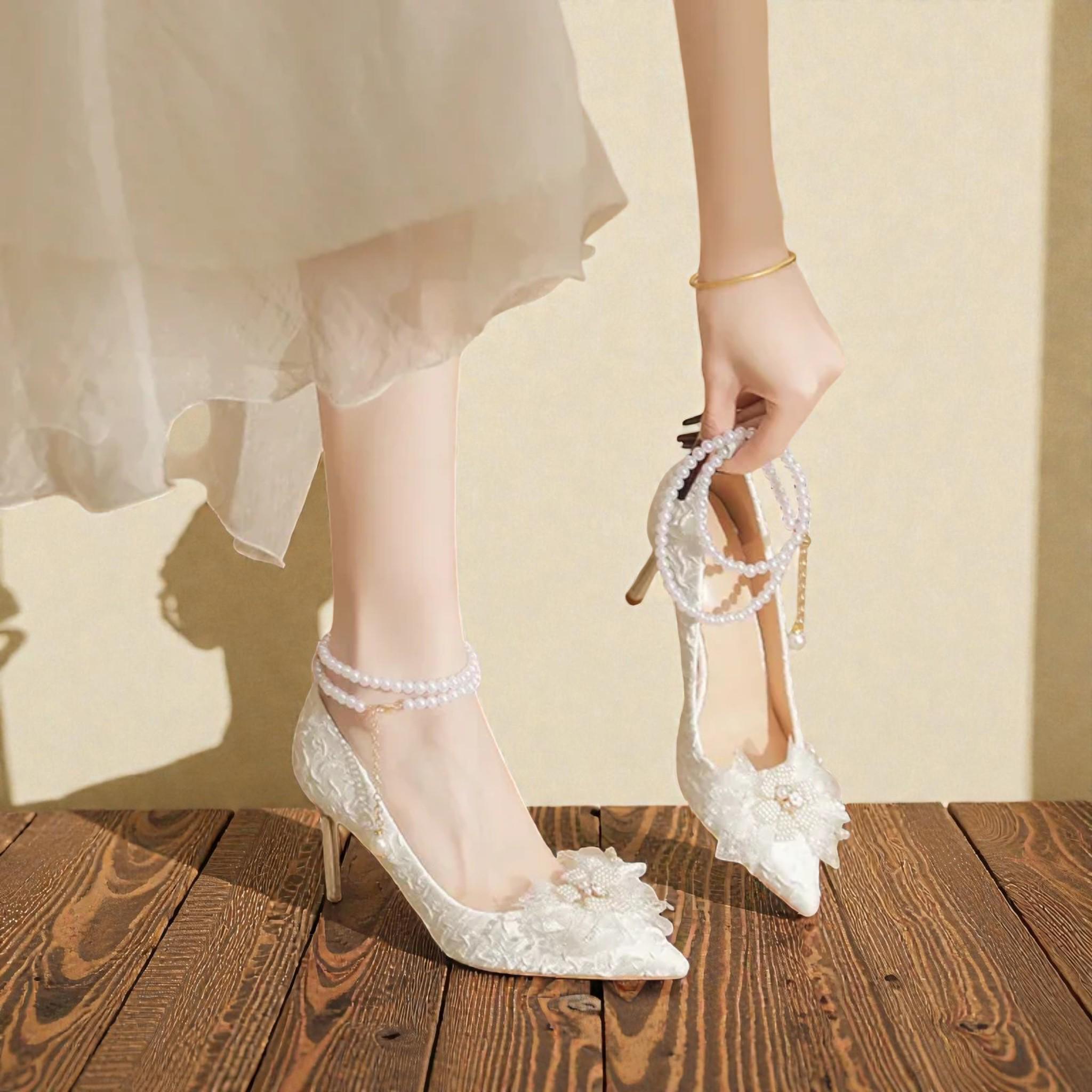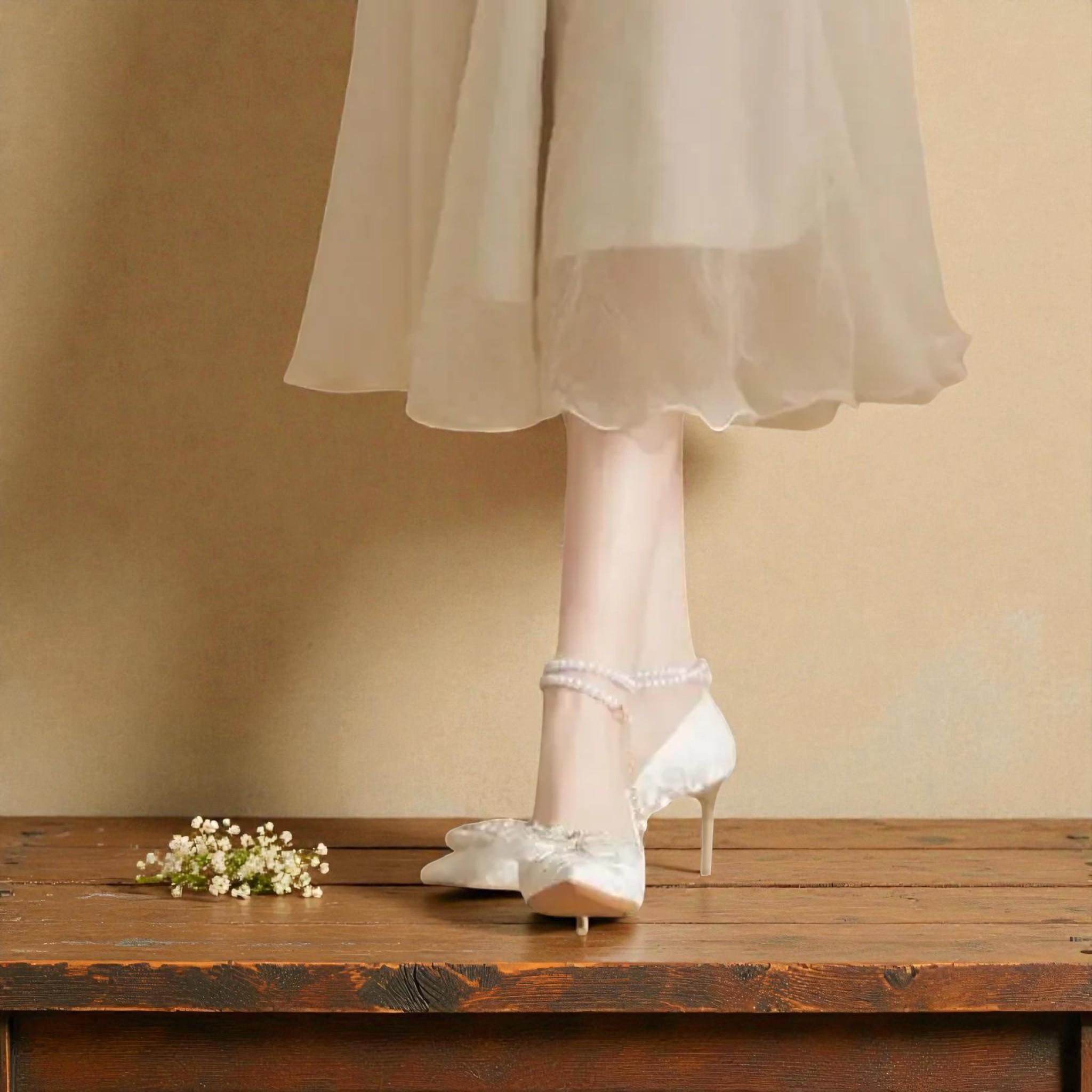 The delicate pearl details add a soft, romantic touch, while the thin high heel enhances your posture and elongates the legs for a graceful, feminine appearance. Lightweight, comfortable, and handmade with care, these heels are perfect for brides seeking classic beauty with modern simplicity.