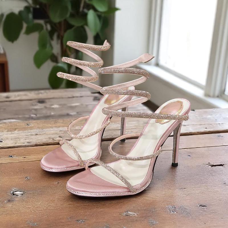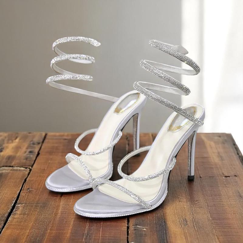 Step into elegance with these luxury gladiator high heel sandals for women. Designed with sparkling rhinestones and a stylish snake wrap detail, these satin-finish heels are perfect for weddings, parties, clubs, or special occasions. Featuring a slim stiletto heel over 8cm, narrow band design, and a secure back strap, these slip-on sandals offer both glamour and comfort.
