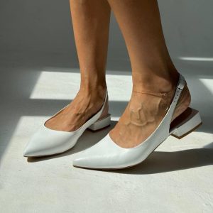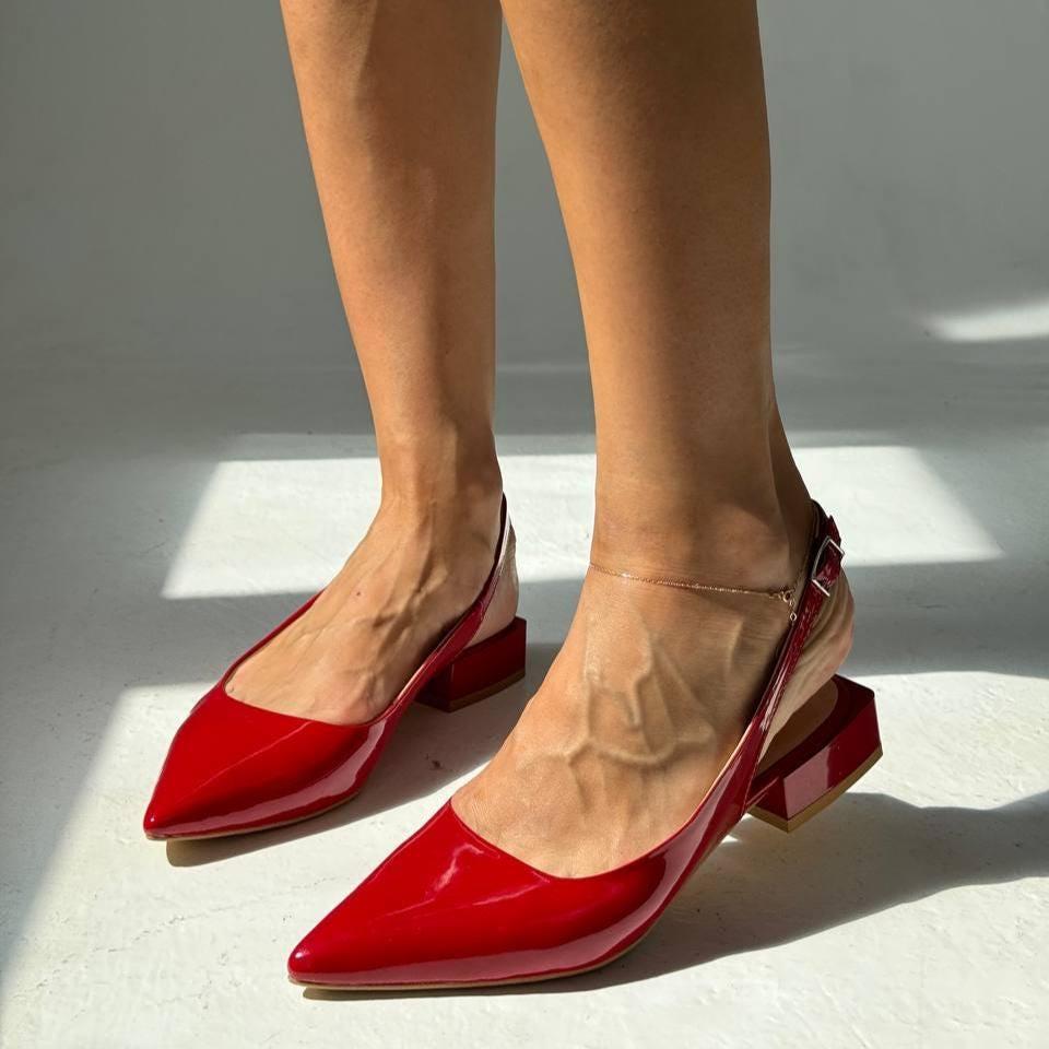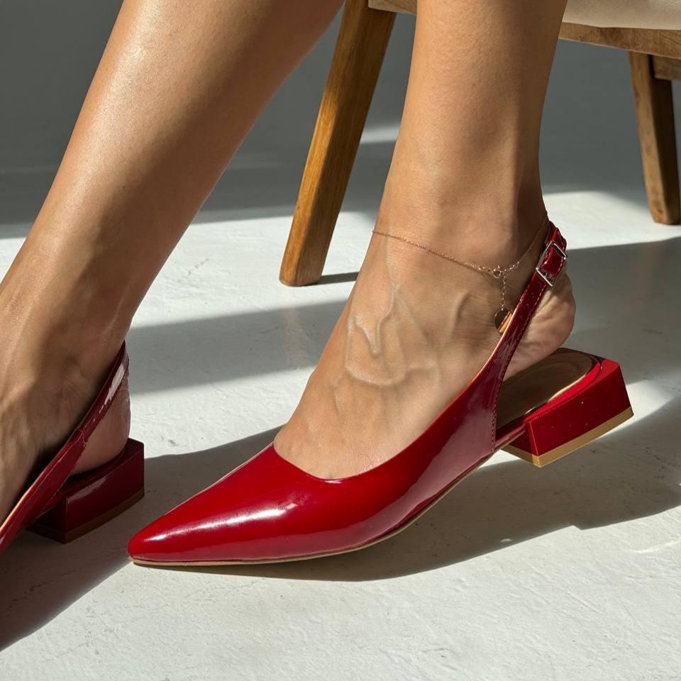 Trendy Red Slingback Heels Pointed Toe Leather Shoes