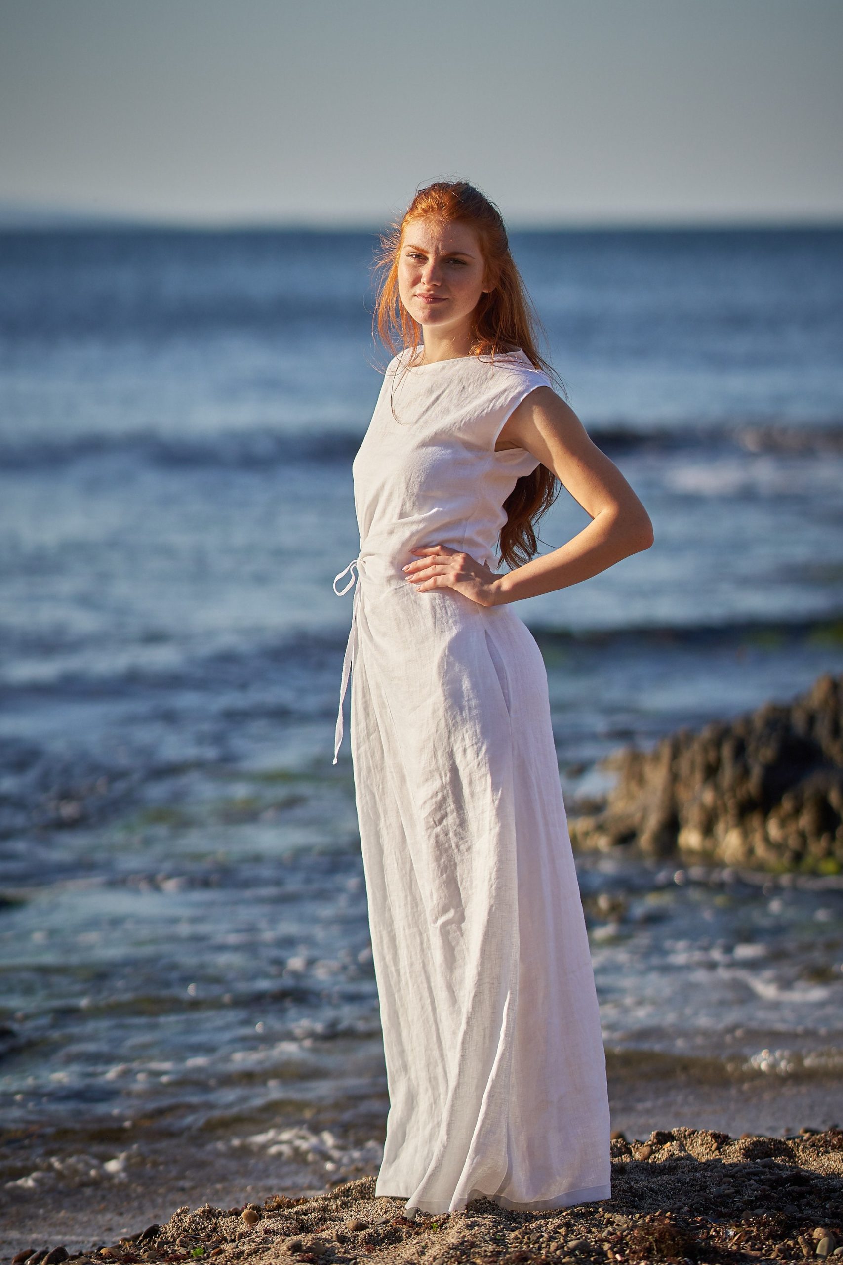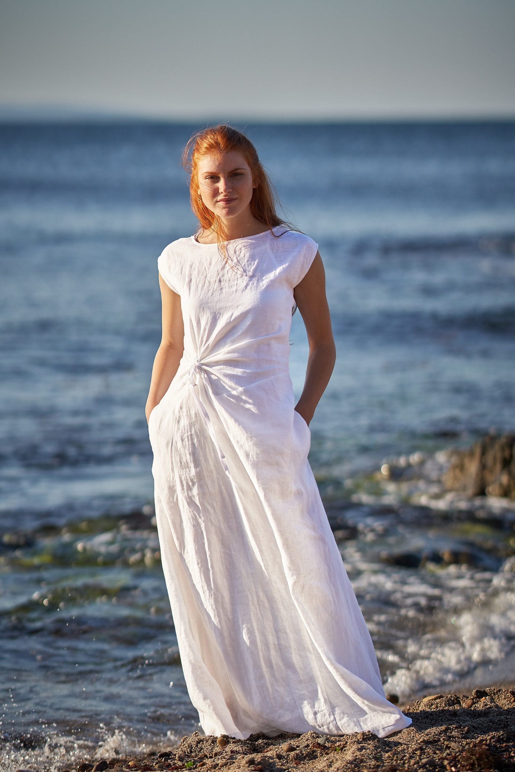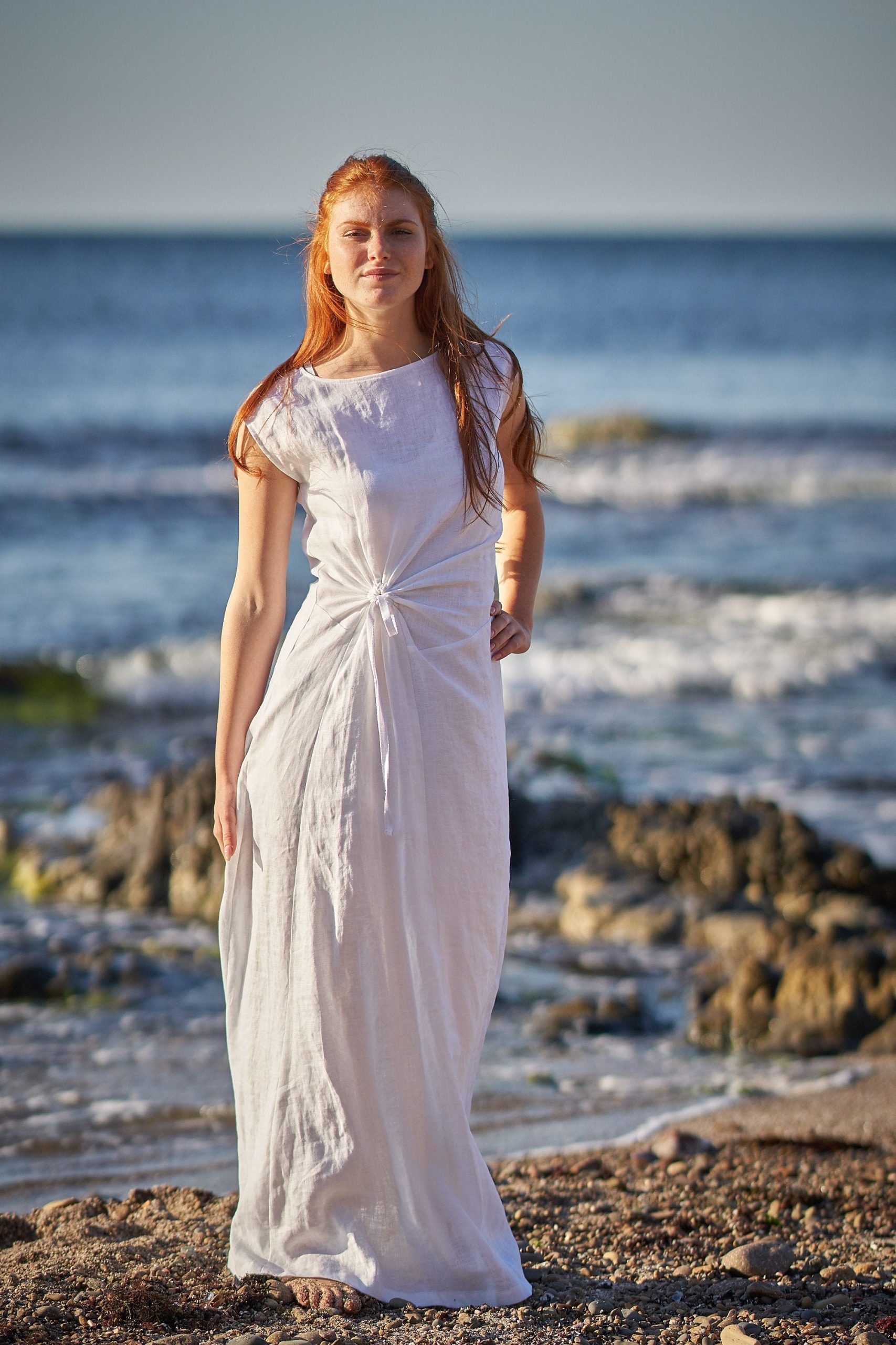 Wedding Dress Linen White Boho Summer Bridal Maxi